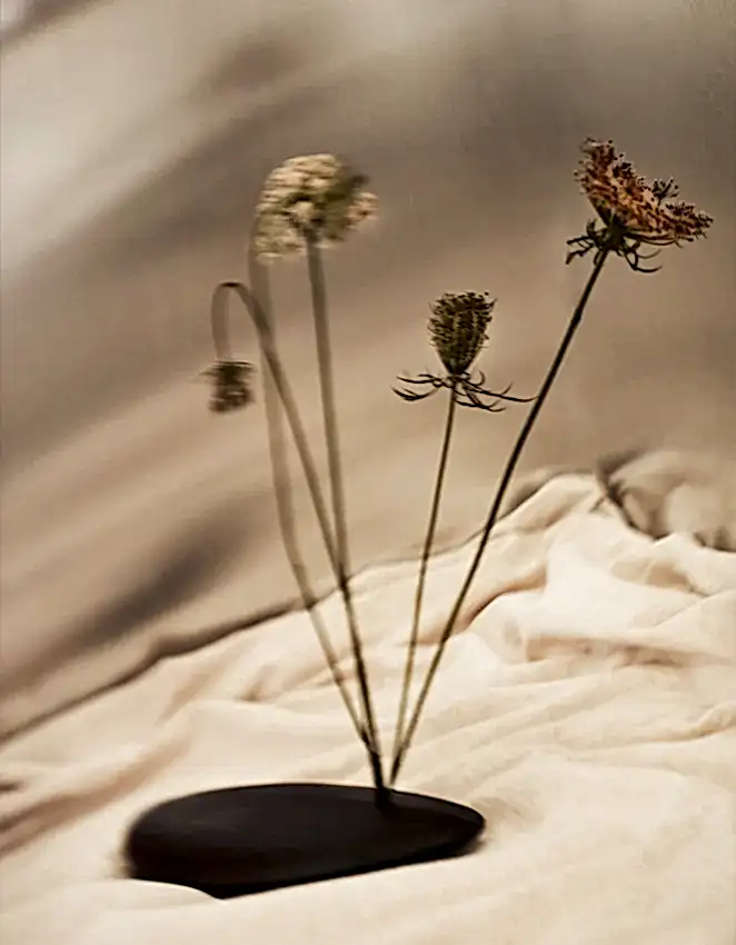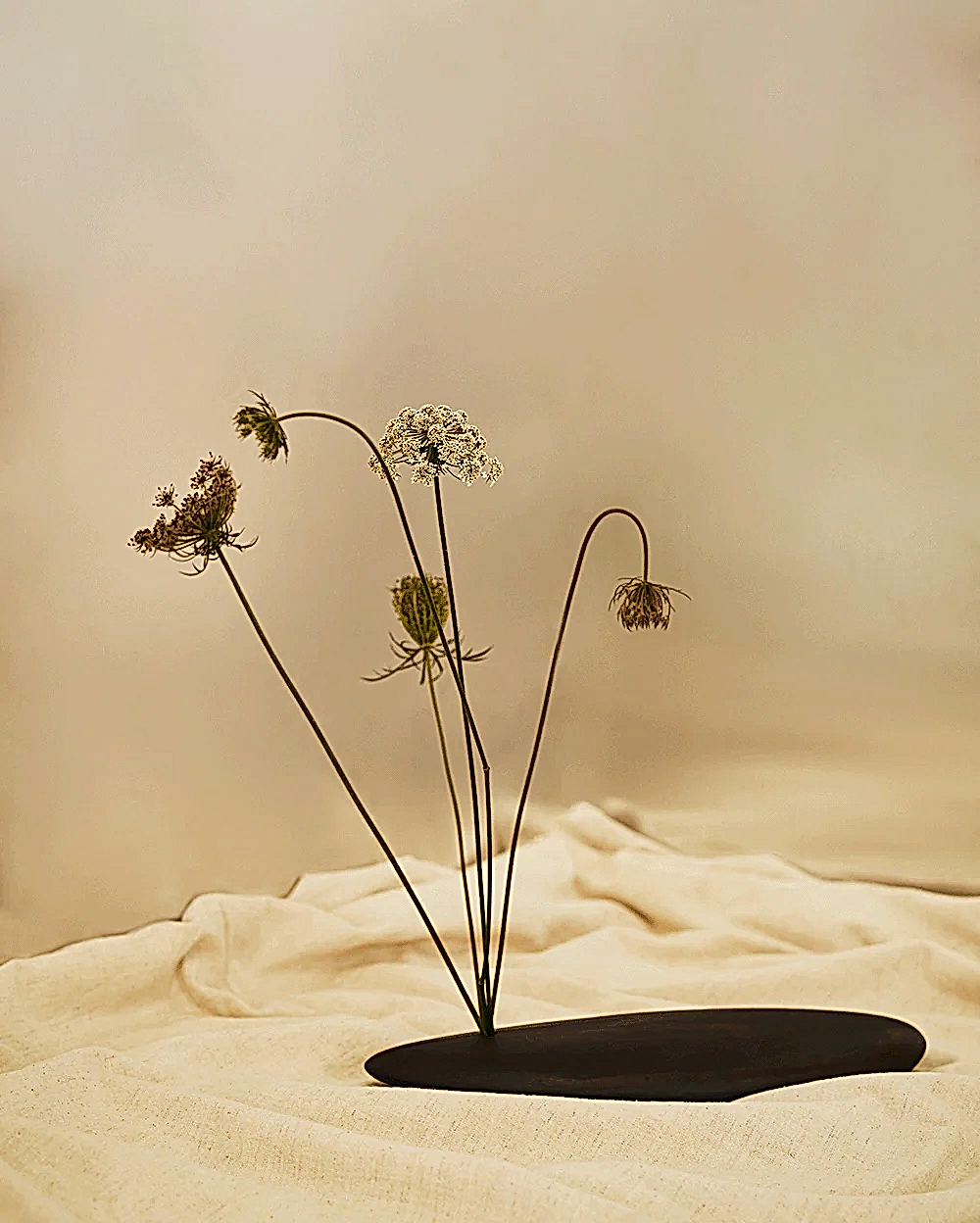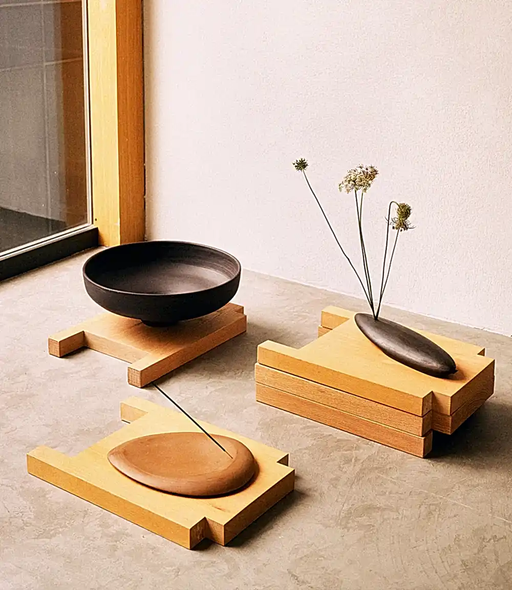 The form of the Ikebana Vase, attributed to the traditional Japanese art of flower arrangement, is like a physical reflection of simplicity, elegance and respect for nature as the focus of the Ikebana philosophy... As a reflection of Ma, which expresses the perception of emptiness in Japanese culture, it traces balance and harmony with flowers placed only on one side. The Incense Holder is a poetic piece that evokes memories and expresses serenity through scent. It promises a calm visual journey as well as stirs the sense of smell from the moment the incense is lit.