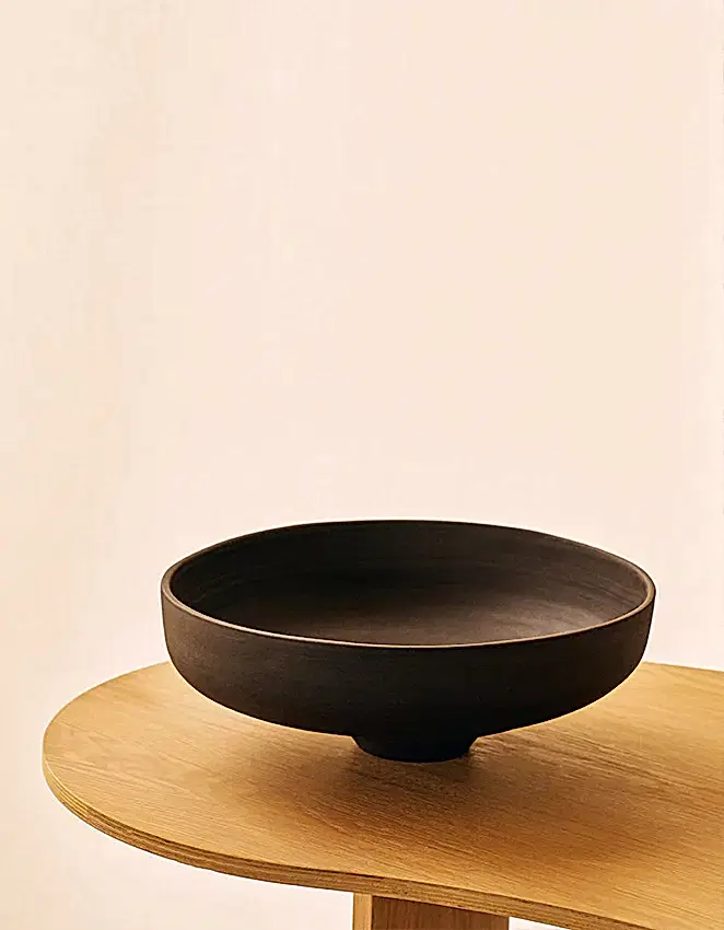 Kita Living x ILAERG. living objects consist of three pieces that promise an experience of serene moments behind their calm forms. Reflecting the spirit of our studio Kita Living's products for simple and modern living spaces, each piece, which traces Japanese culture, refers to the aesthetic perception of this culture through simplicity and elegance. The Ceramic Vessel, created by İlayda Ergün in her studio with her own hands on a lathe, is a piece that alludes to ritualistic moments and emotions. Its sculptural and elevated-footed appearance is further deepened on the inner surface with its dark tones.